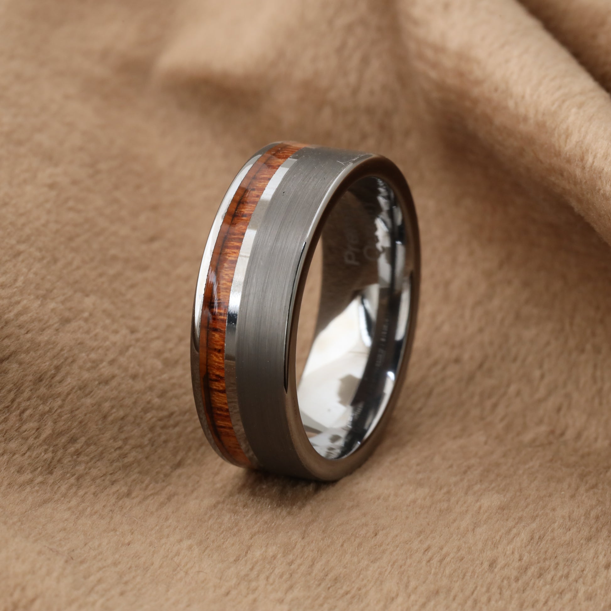 خشب الكوا هو من أندر أنواع الأخشاب في العالم ويأتي من جزر هاواي، مما يضفي على الخاتم طابعاً استثنائياً وفريداً. كل قطعة من خشب الكوا لها نمط طبيعي مختلف، مما يجعل كل خاتم قطعة فنية فريدة من نوعها.