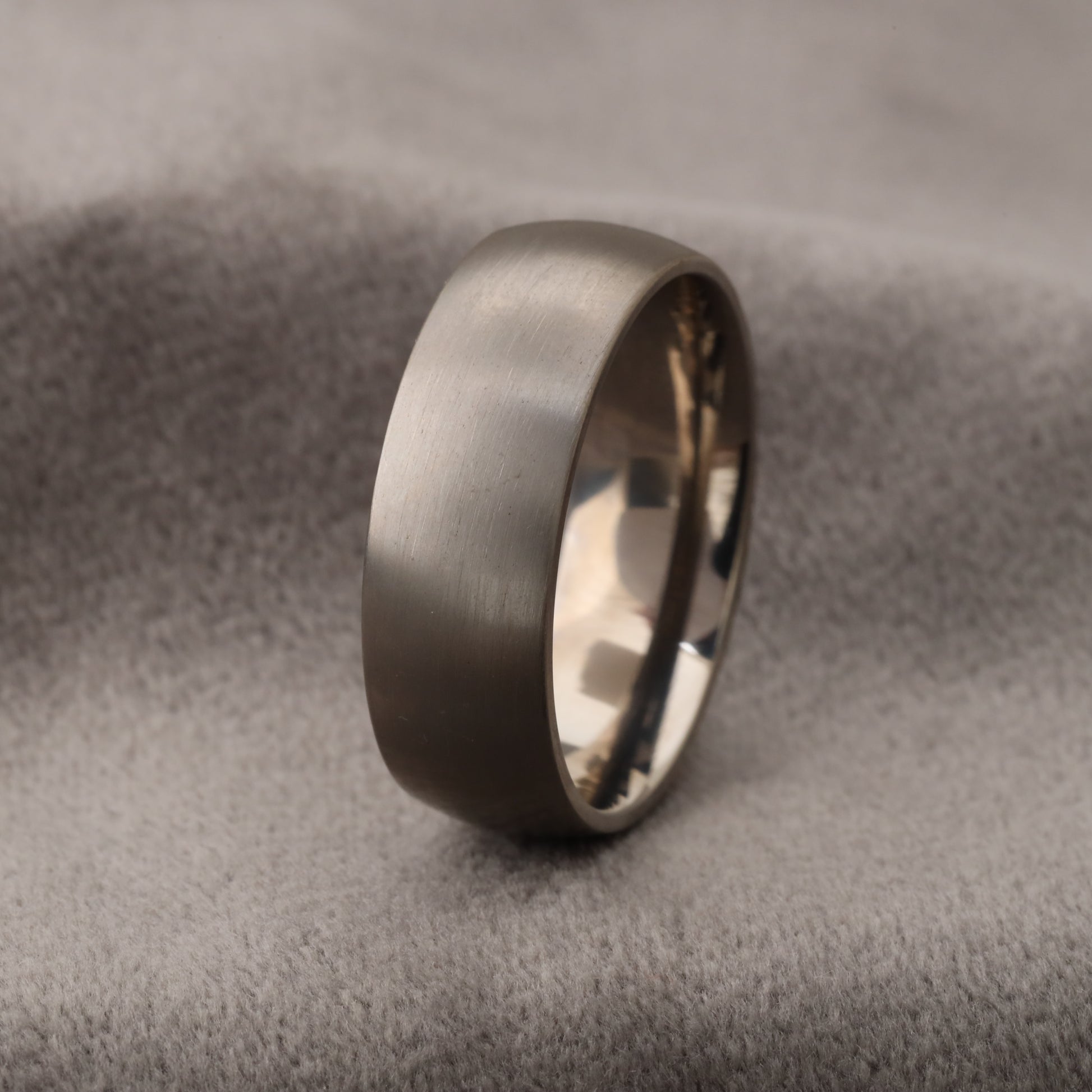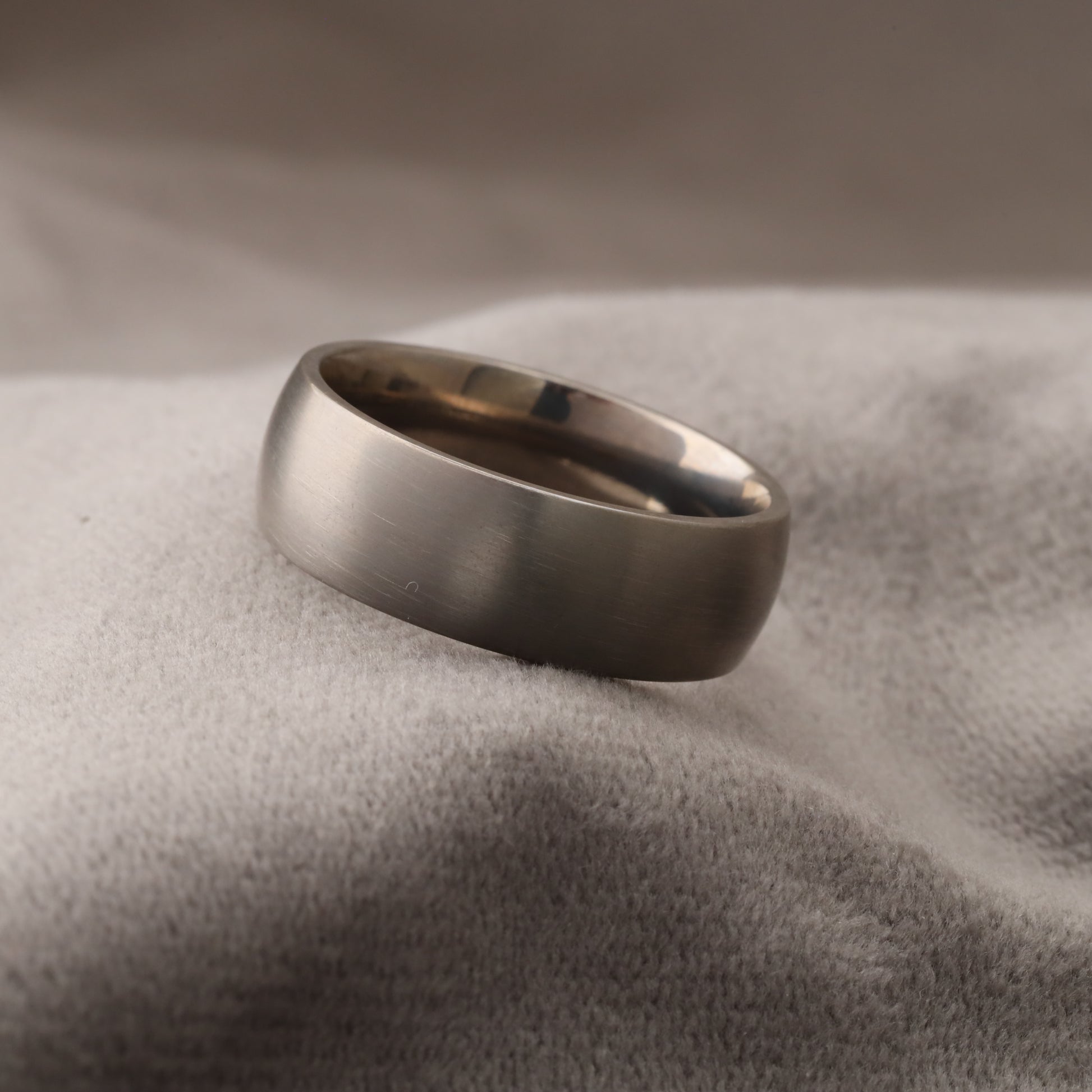 دبلة تيتانيوم فضي بتشطيب مط توحي بمظهر في غاية البساطة والأناقة بعرض 8 ملليمتر. تتميز هذه الدبلة بتصميم بسيط وأنيق يجمع بين الكلاسيكية والعصرية مع العرض الأوسع المريح.