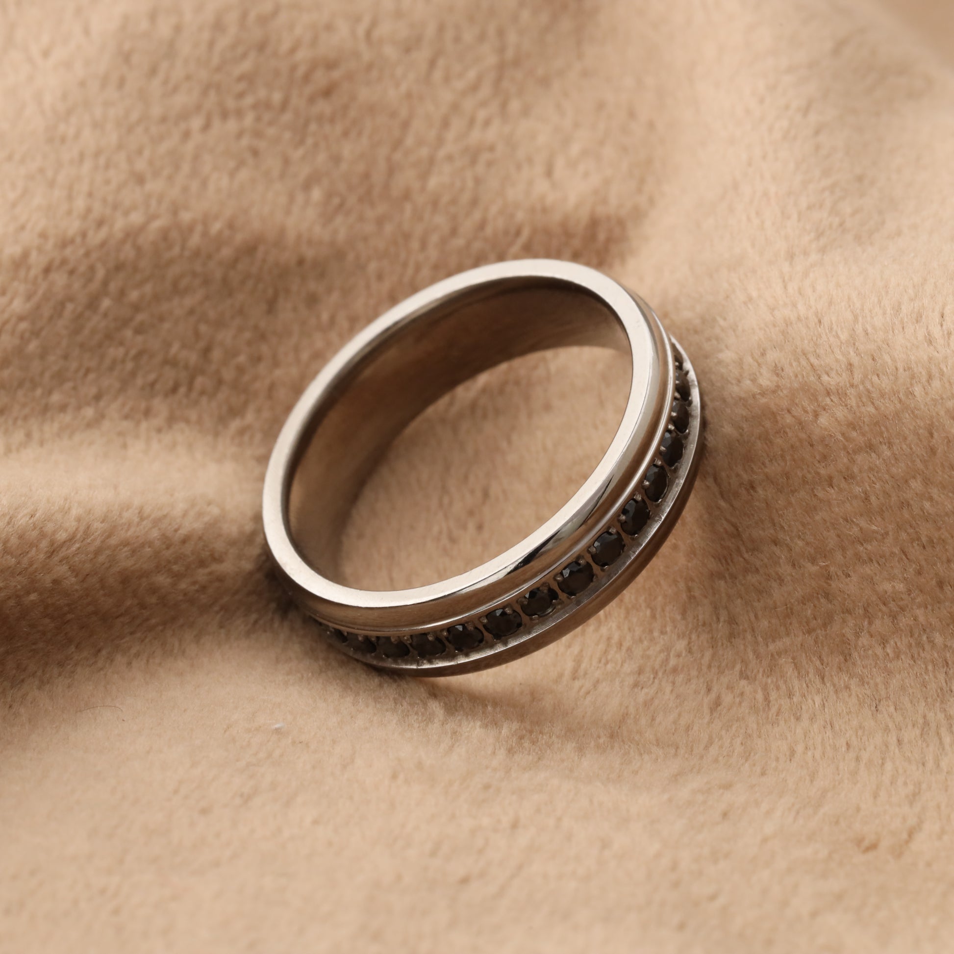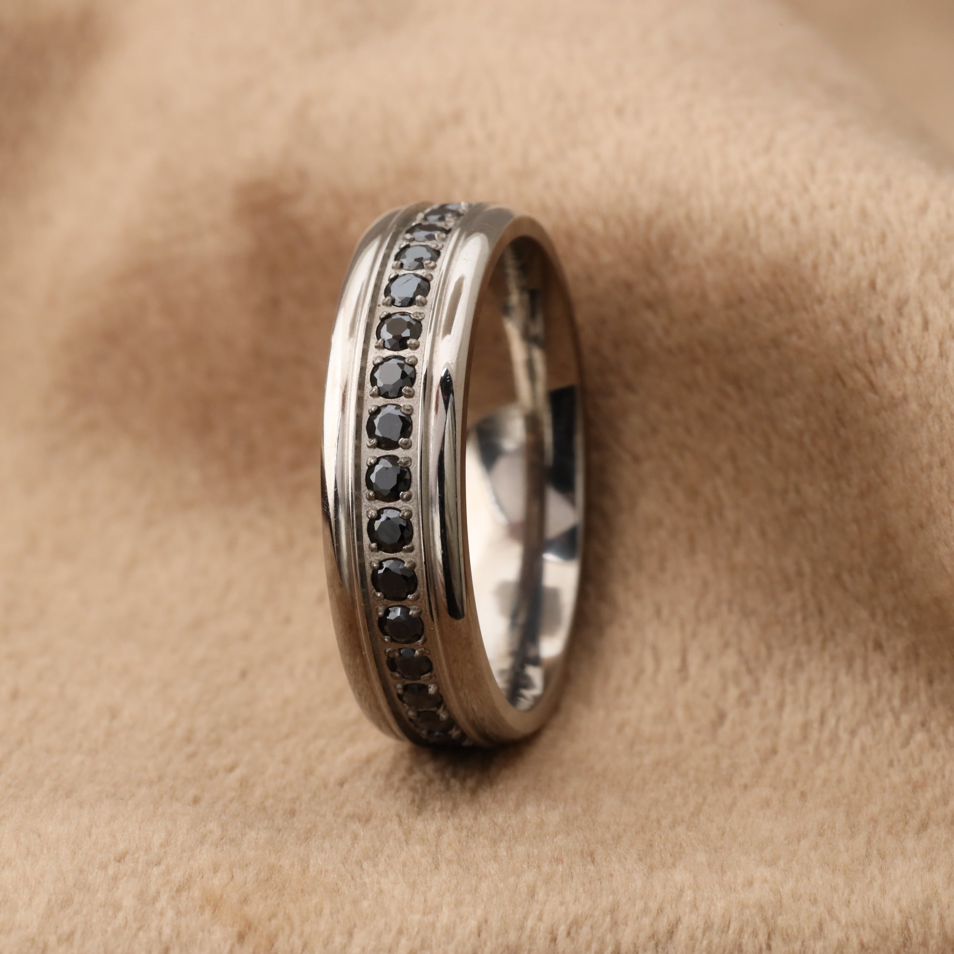 A331 Silver Titanium Ring with CZ Zircon Stones - 6.5mm Classic Design