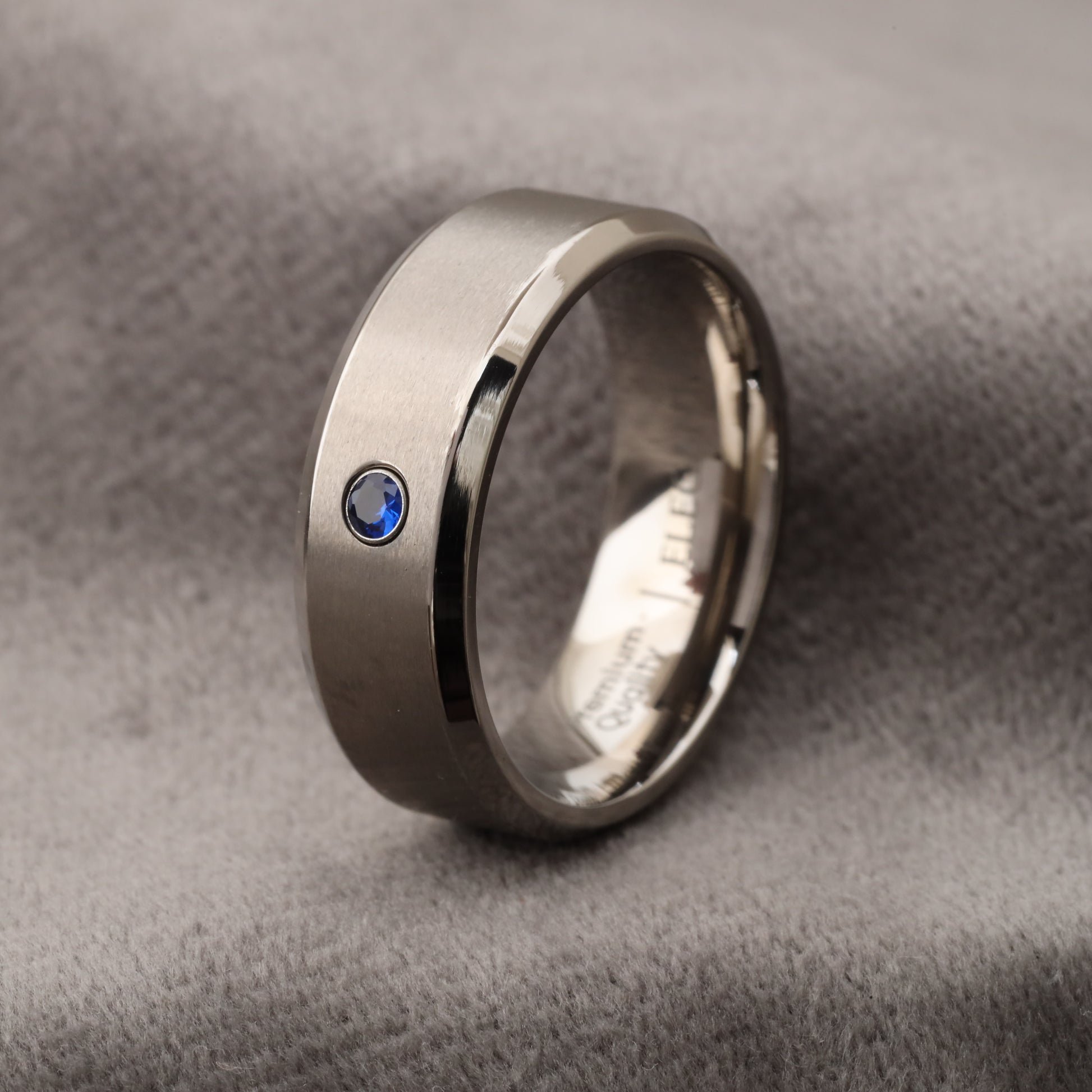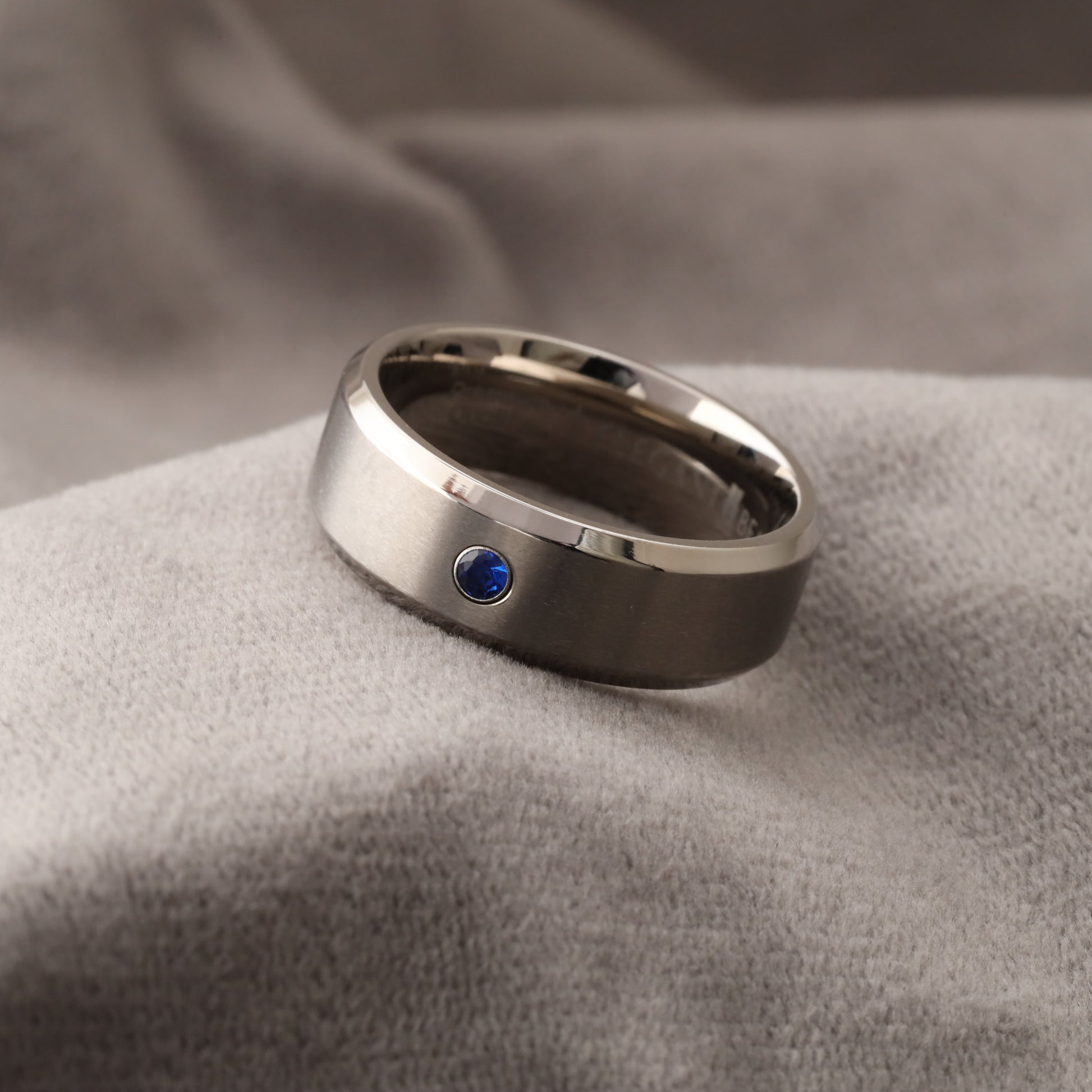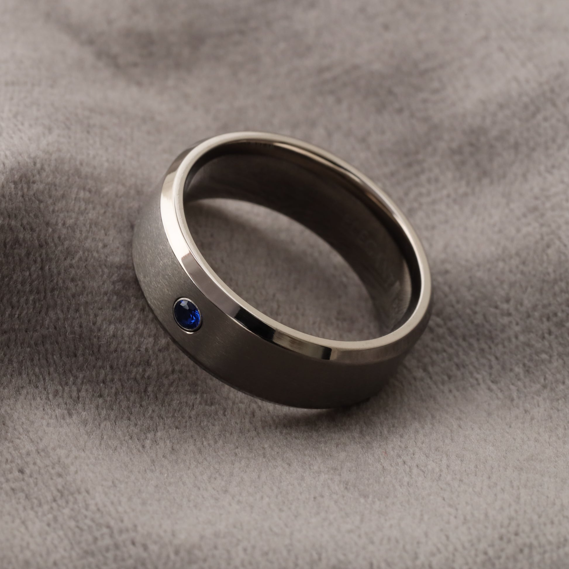 دبلة A334 من التيتانيوم الفضي مع حجر الزركون الأزرق - عرض 8 ملم - البساطة الأنيقة