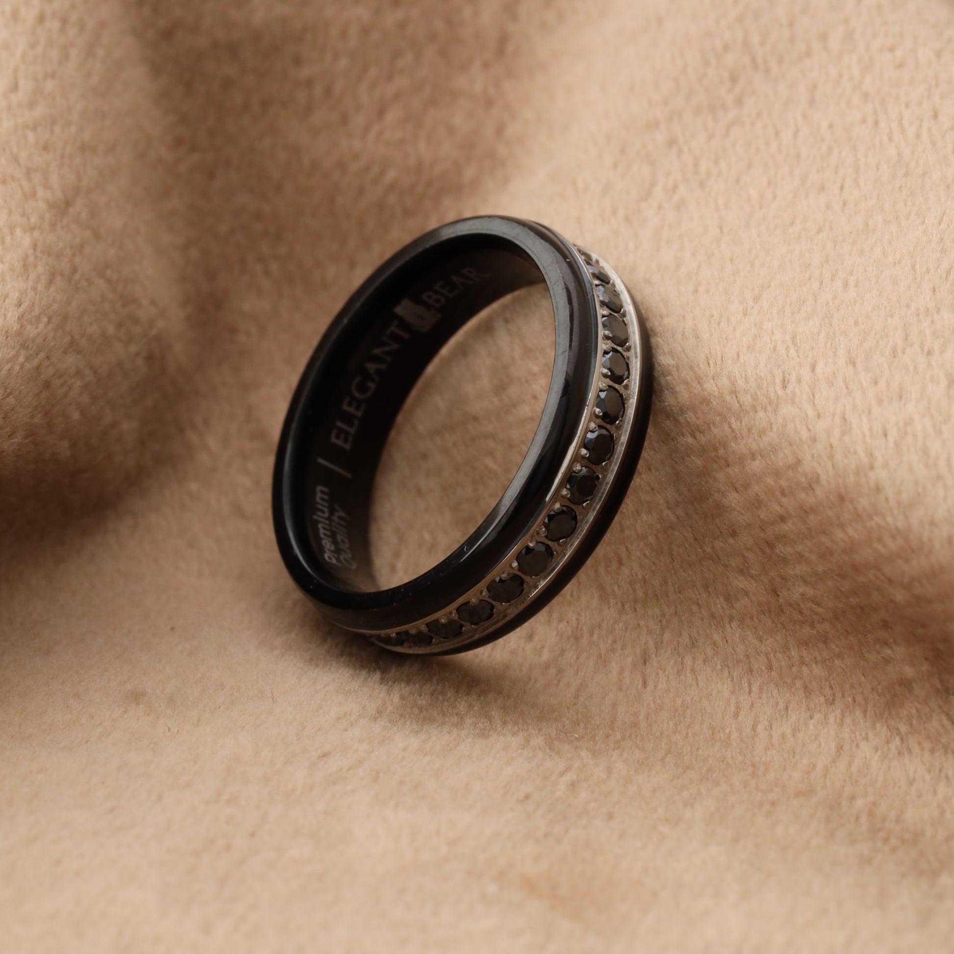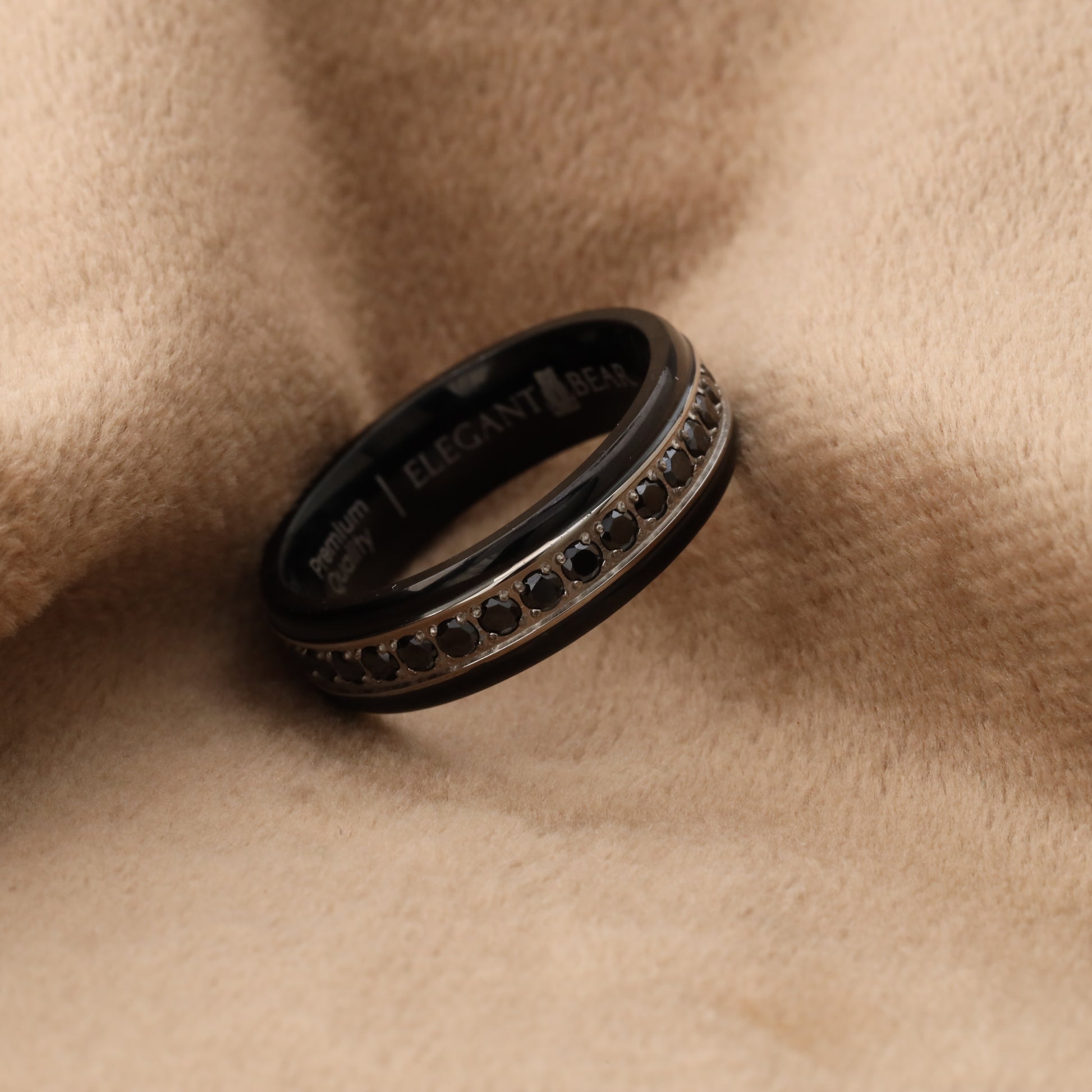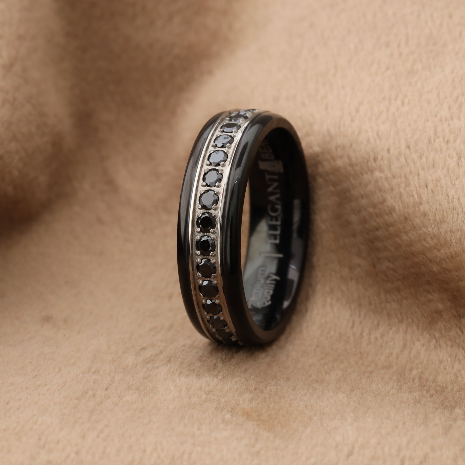 Black Titanium Ring with CZ Zircon Stones - Classic Elegance Design - 6.5mm - A330