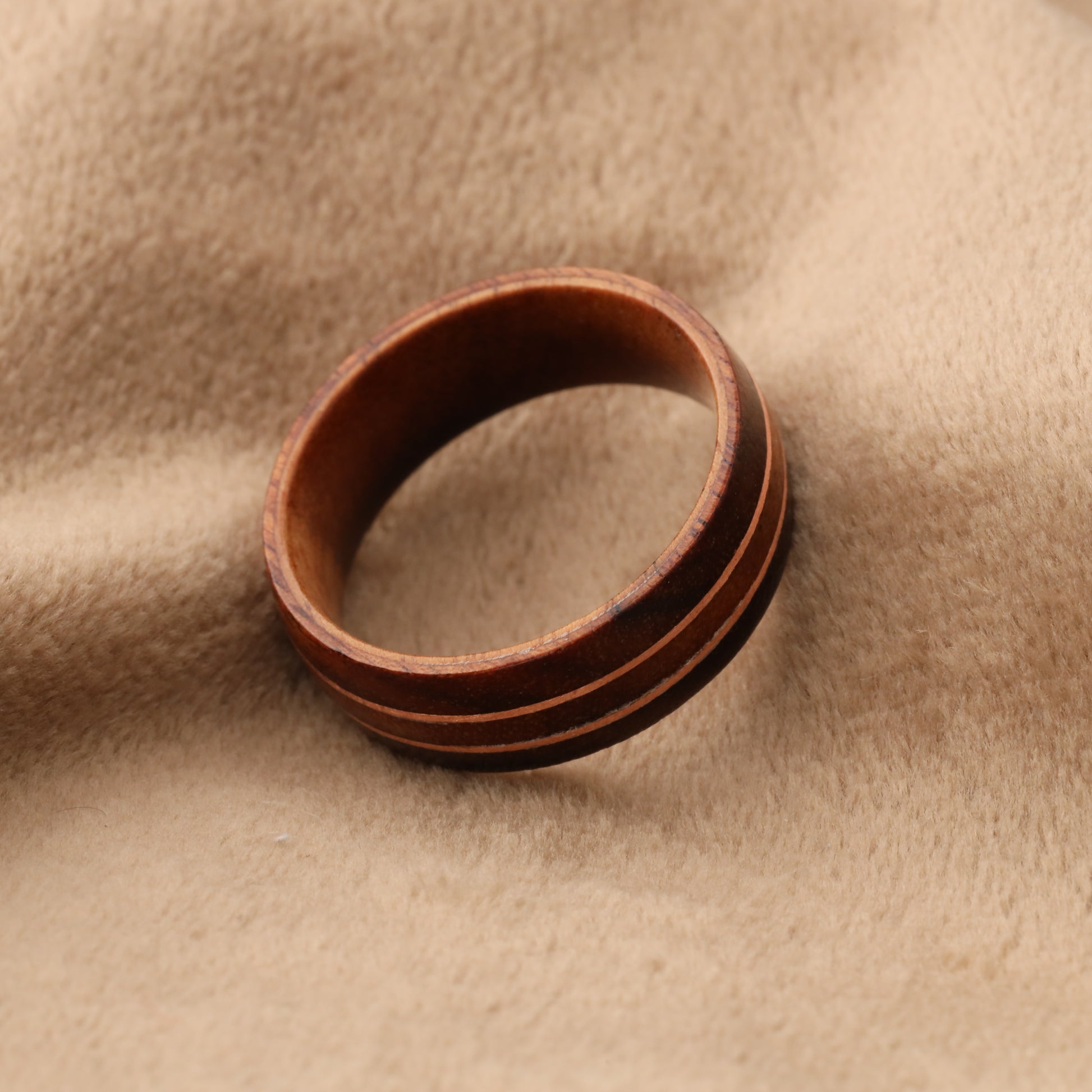Brazilian Rosewood & Ebony Ring with Rose Gold Copper Lines - Pure Wood Design - 8mm - A213