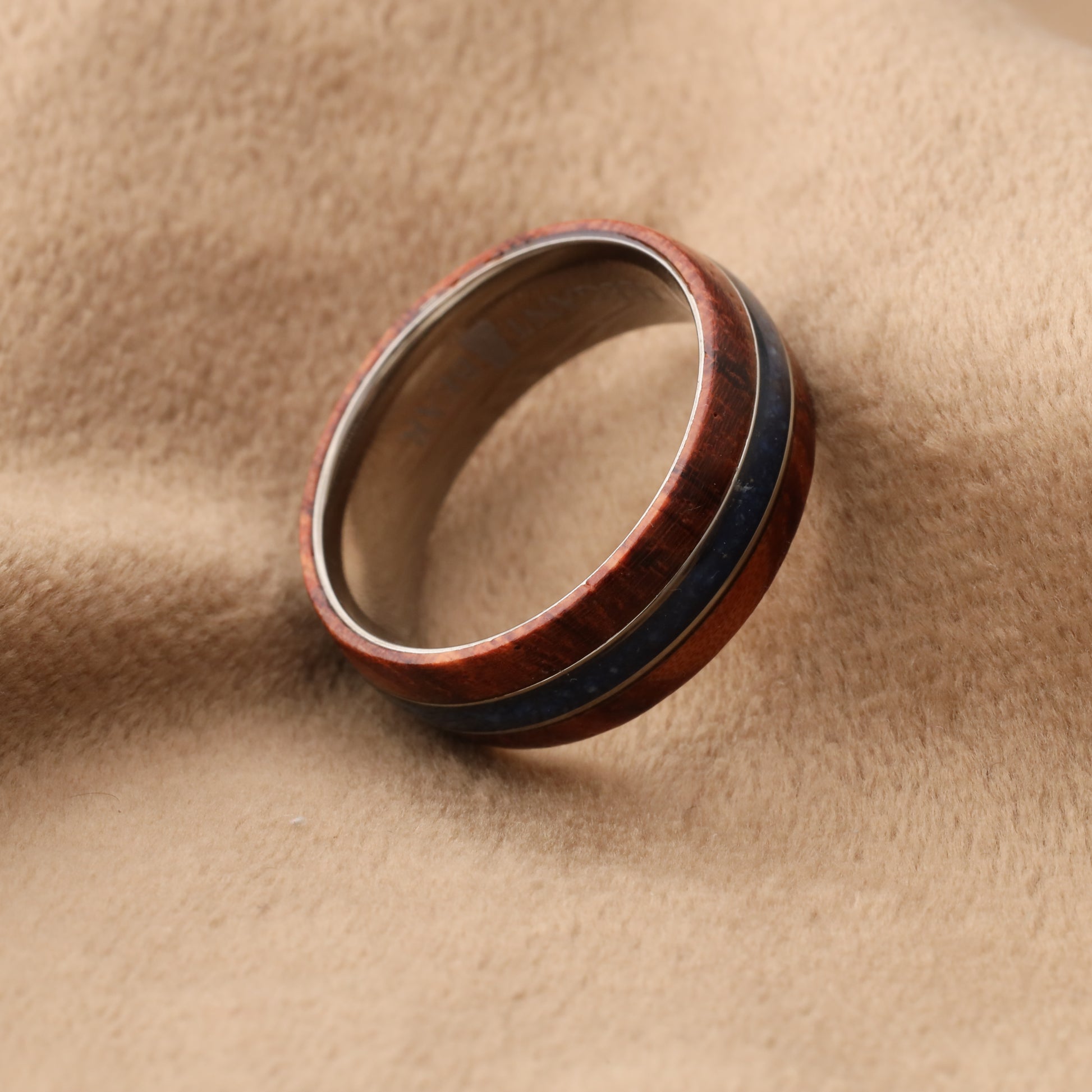 اكتشف جمال الطبيعة الخالص في هذه الدبلة الاستثنائية التي تجمع بين أثمن أنواع الأخشاب الطبيعية - الروز بنتوود البرازيلي النادر وخشب الأبانوس الأسود الفاخر، مع تفاصيل فضية أنيقة.