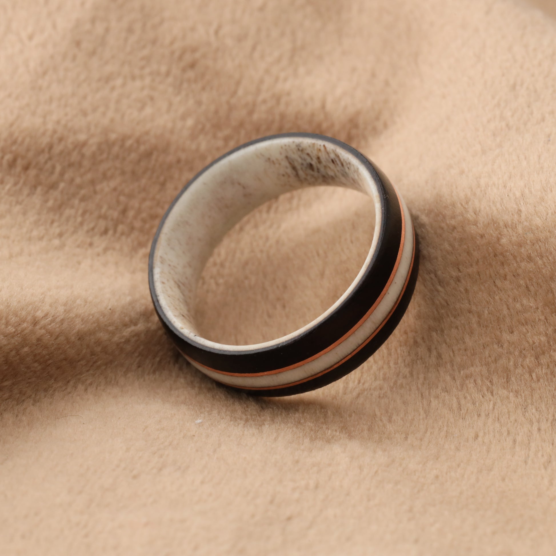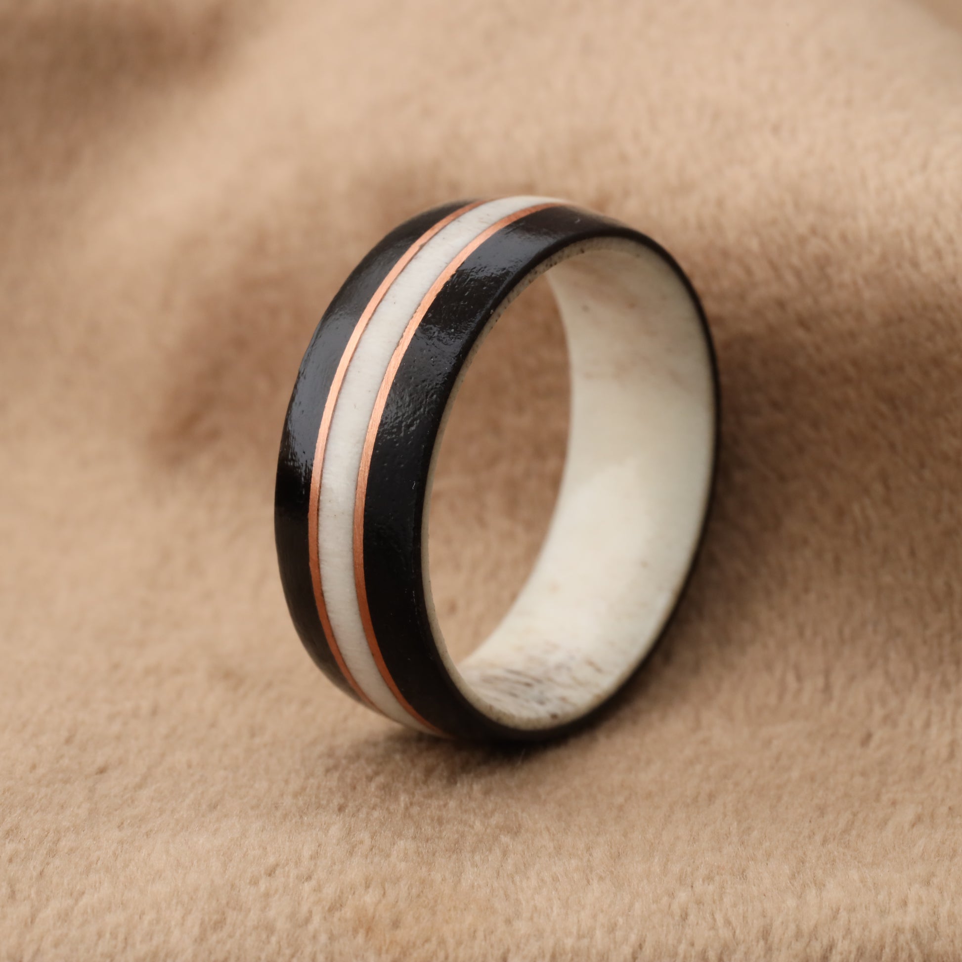 Deer Antler & Black Ebony Wood Ring with Rose Gold Copper Lines - Pure Natural Design - 8mm - A205