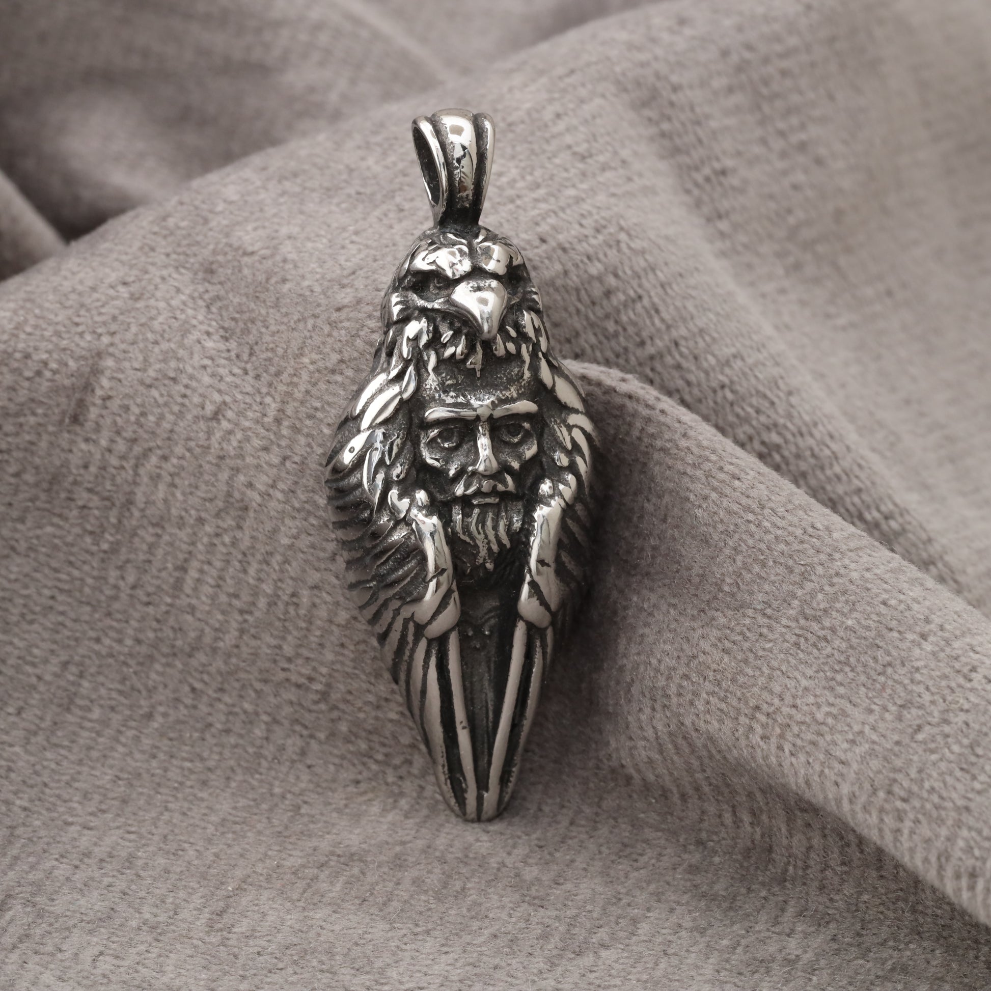 الستانلس ستيل 316L: مقاوم للصدأ، مضاد للحساسية، لا يتغير لونه مع الوقت. التشطيب الفضي المصقول يبرز التفاصيل الدقيقة للنسر والمحارب ويضفي عمقاً وبعداً على التصميم.