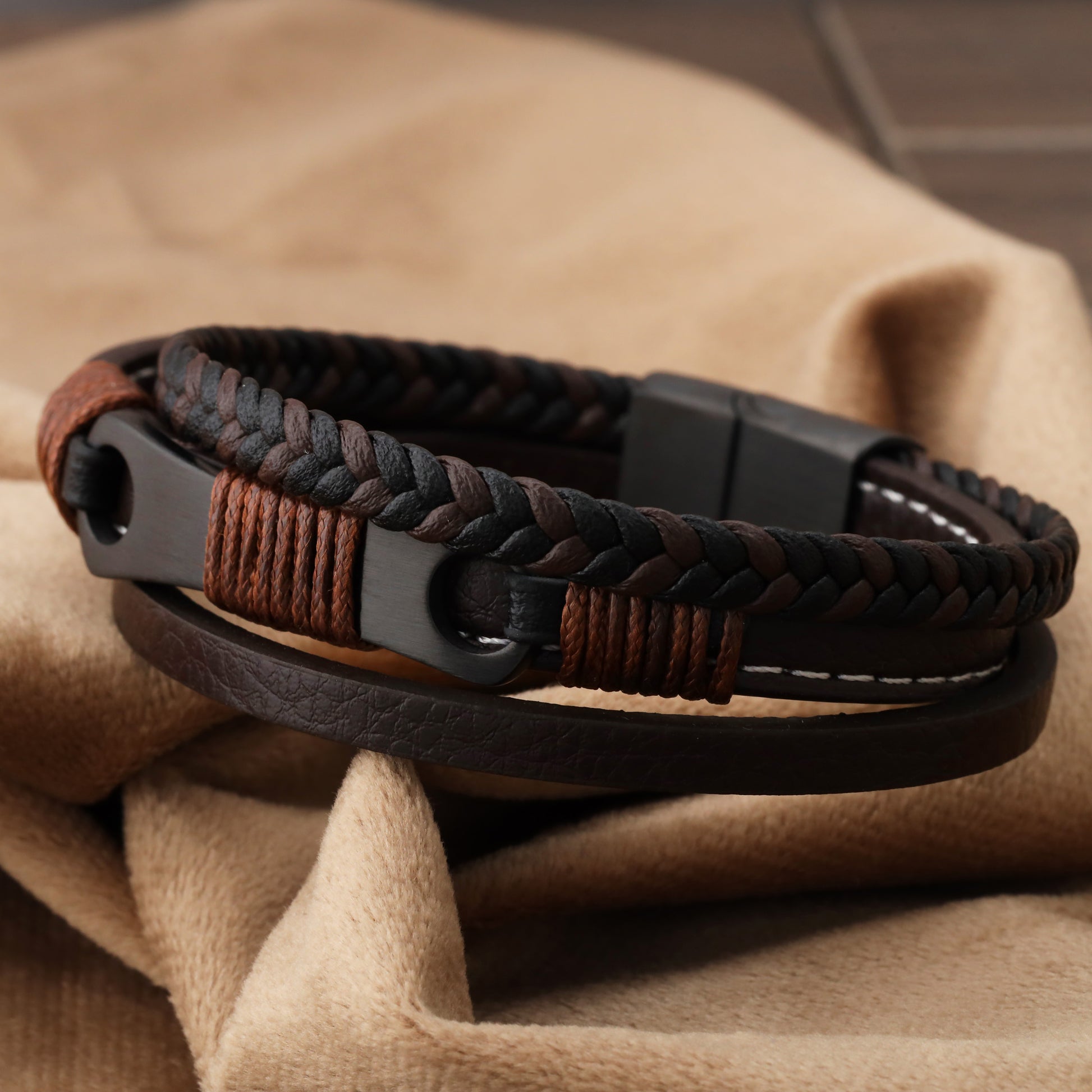 - 🔗 جديلة جلدية مزدوجة باللون البني بتصميم محكم يضيف لمسة من القوة والرقي