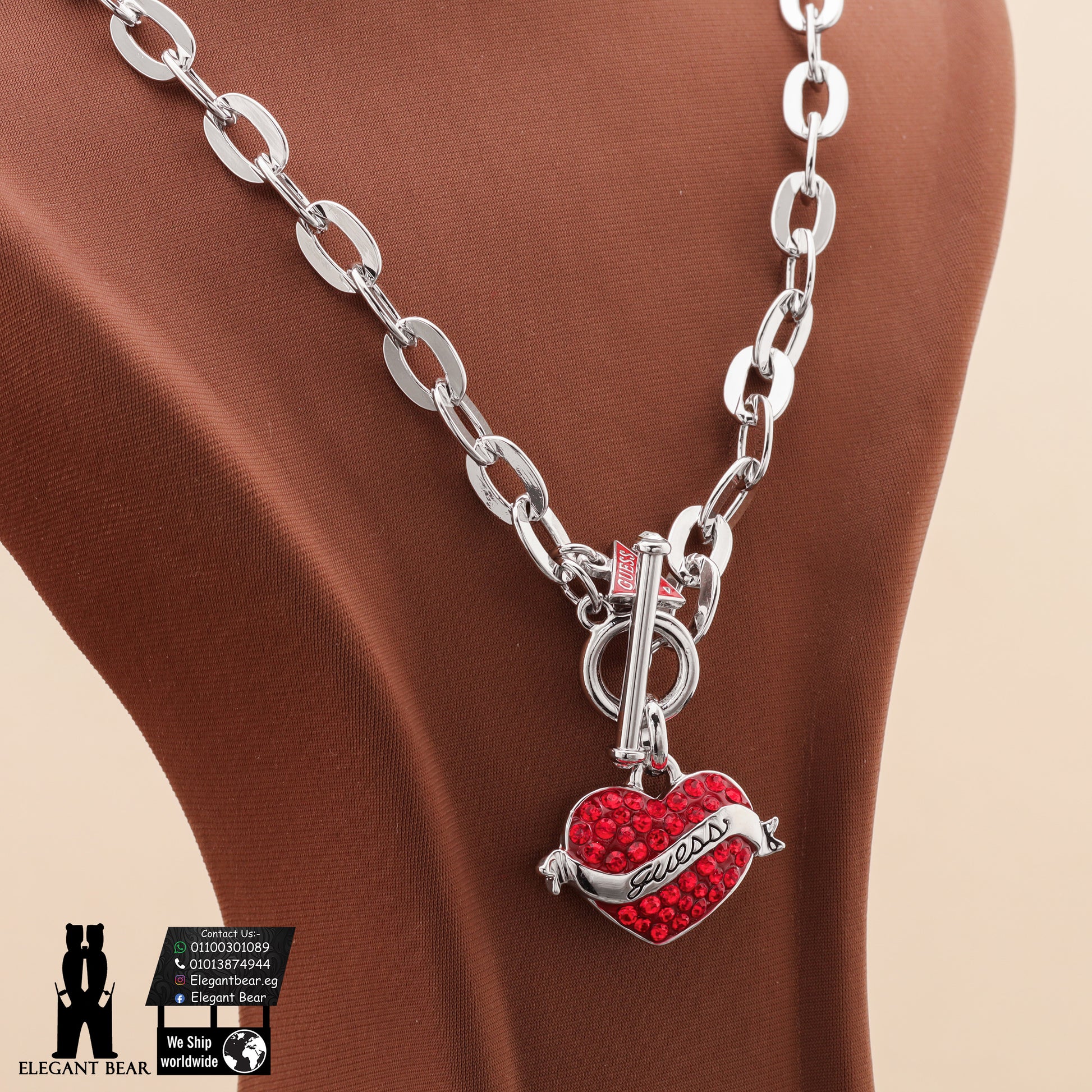 🌟 تألقي بجرأة ورومانسية مع سلسلة GUESS الأصلية بتصميم القلب الأحمر الساحر!