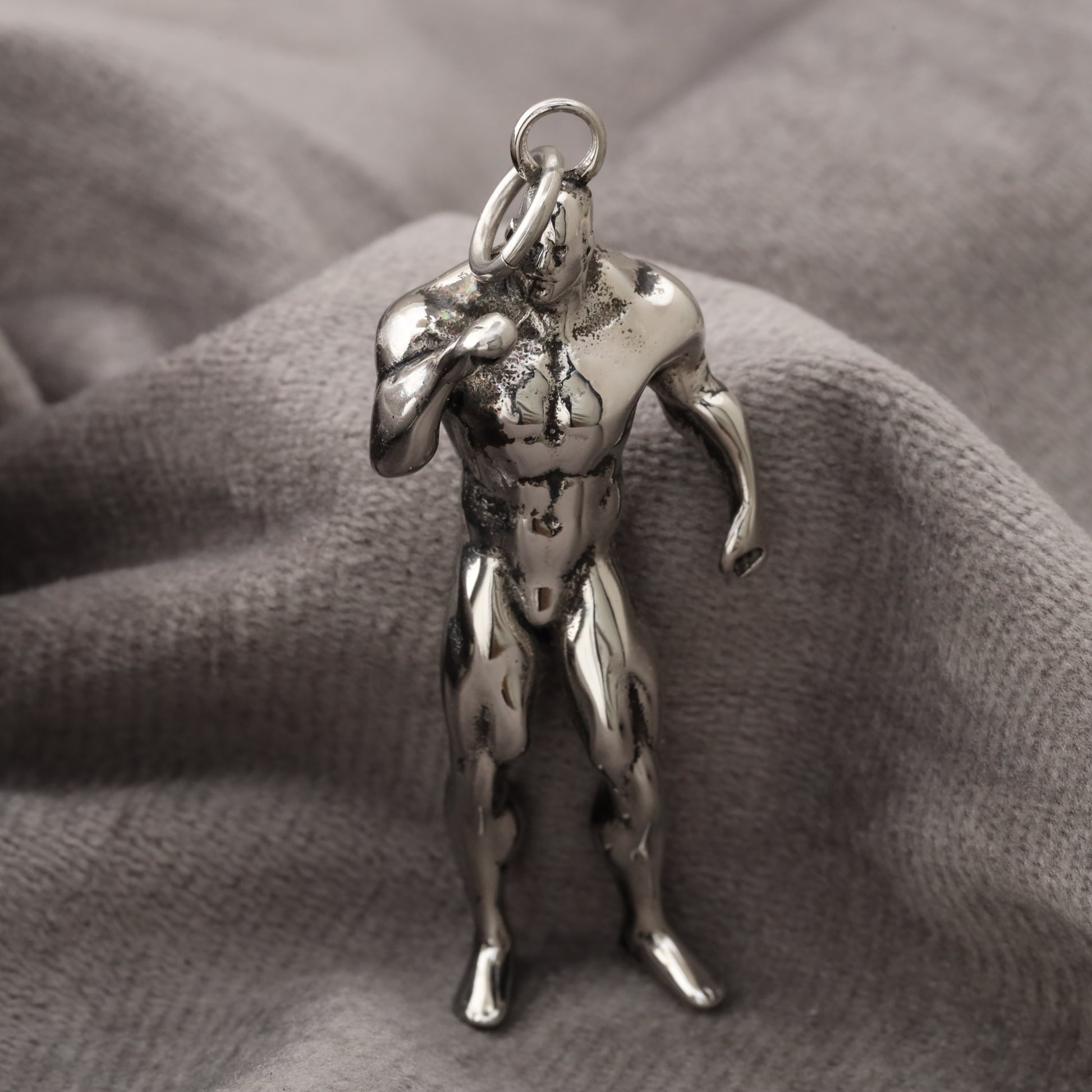 دلاية الرجل الفضي الفاخرة بتصميم ثلاثي الأبعاد مذهل يُظهر شكل رجل بكامل تفاصيله الجسدية. تتميز بنقوش واقعية تُبرز العضلات والملامح الذكورية بدقة استثنائية، مع تشطيب فضي لامع يُضفي عليها طابعاً أنيقاً وقوياً، مما يجعلها قطعة مجوهرات تعبر عن الرجولة الحقيقية.