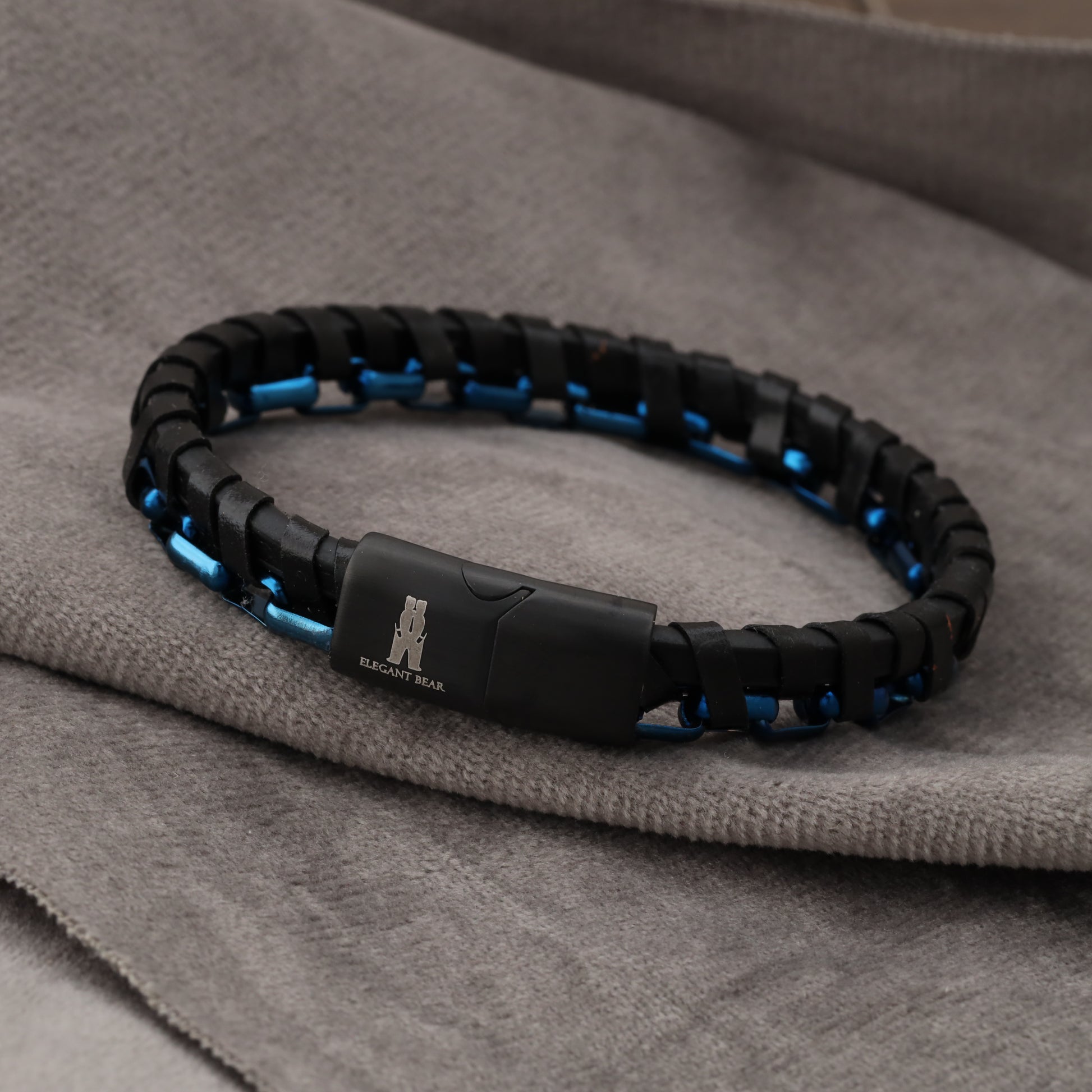 An elegant bracelet crafted from high-quality natural leather and rust-resistant stainless steel, combining luxury and practicality in a modern design suitable for all occasions.