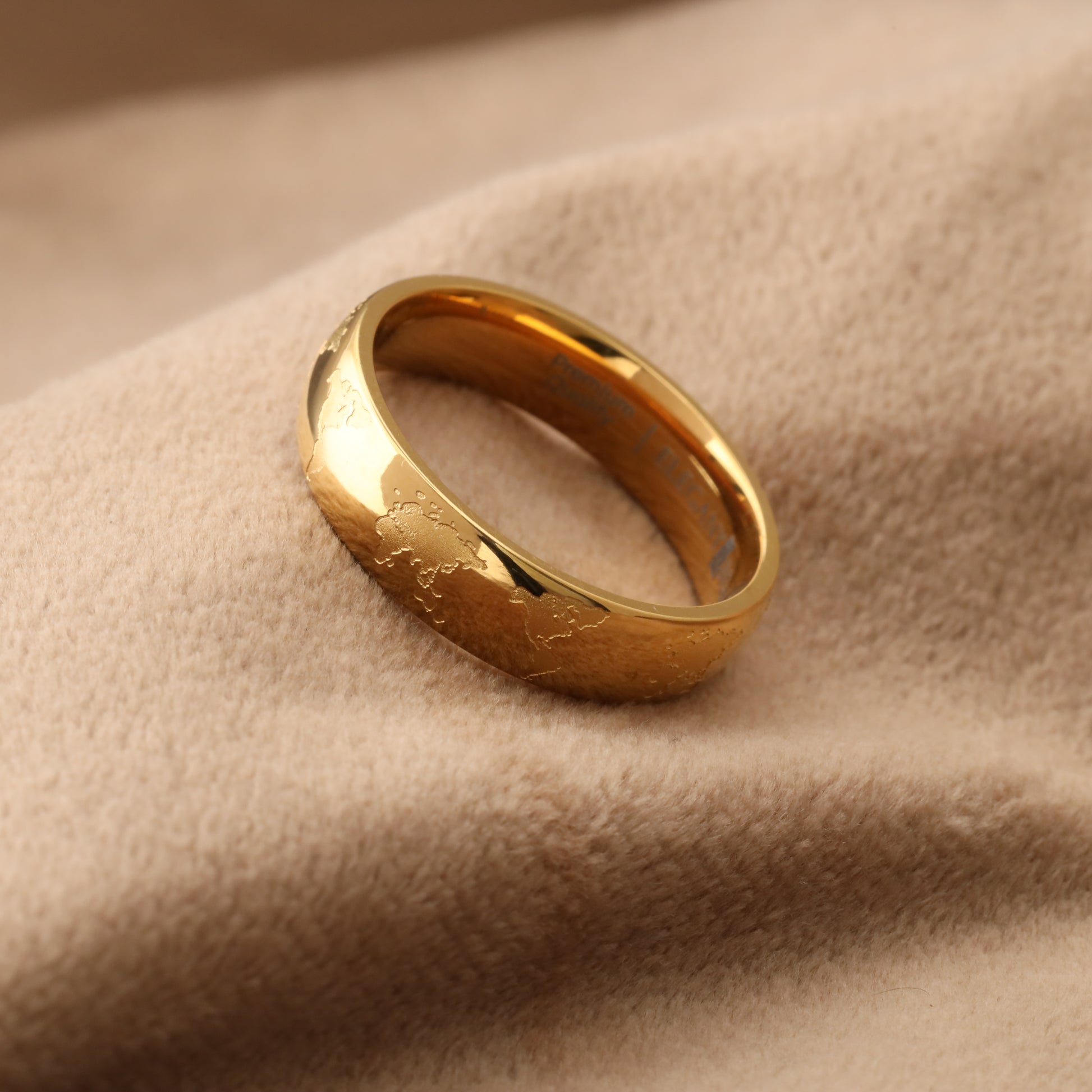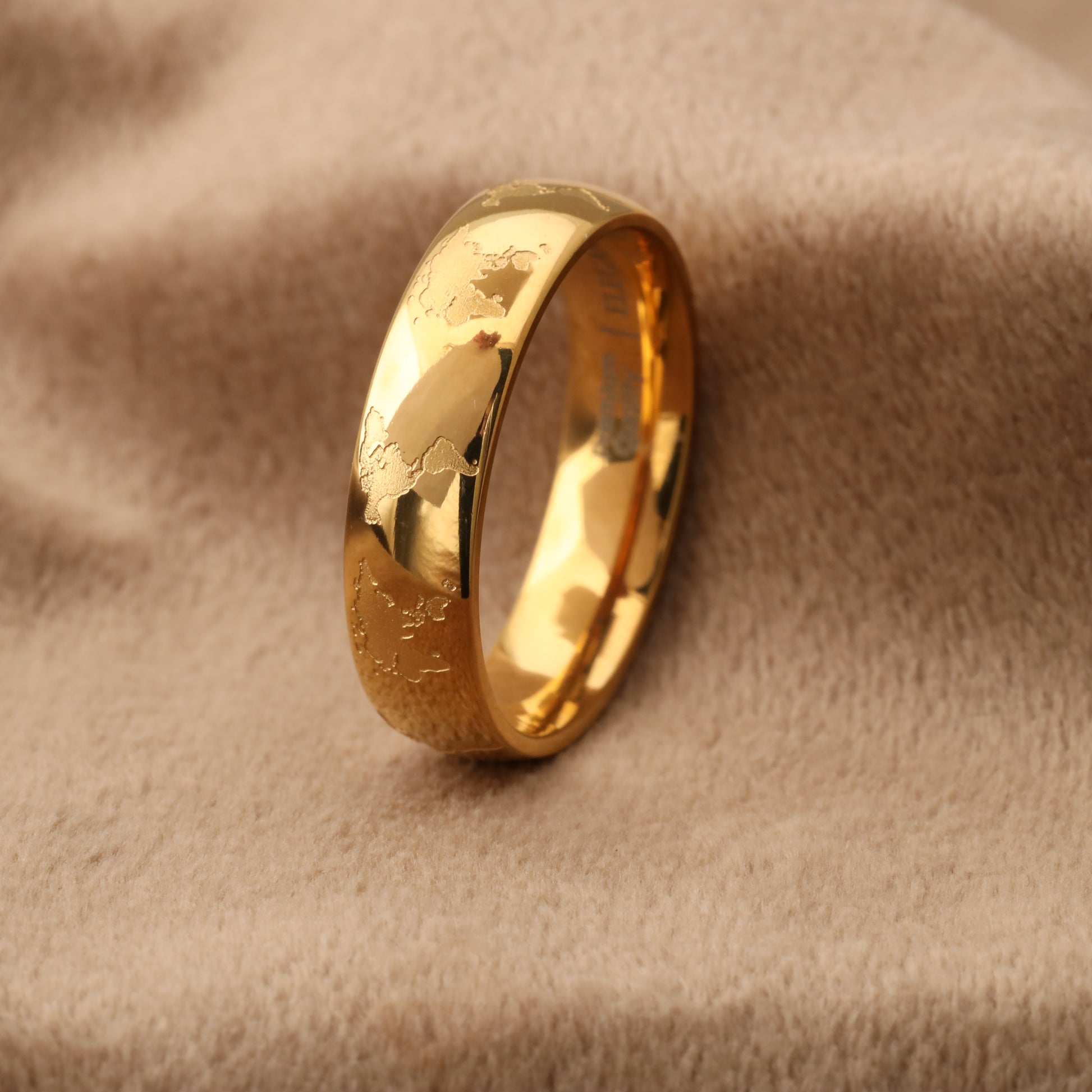 🌍 Luxurious Titanium Ring with Gold Plating & World Map Engraving 🌍