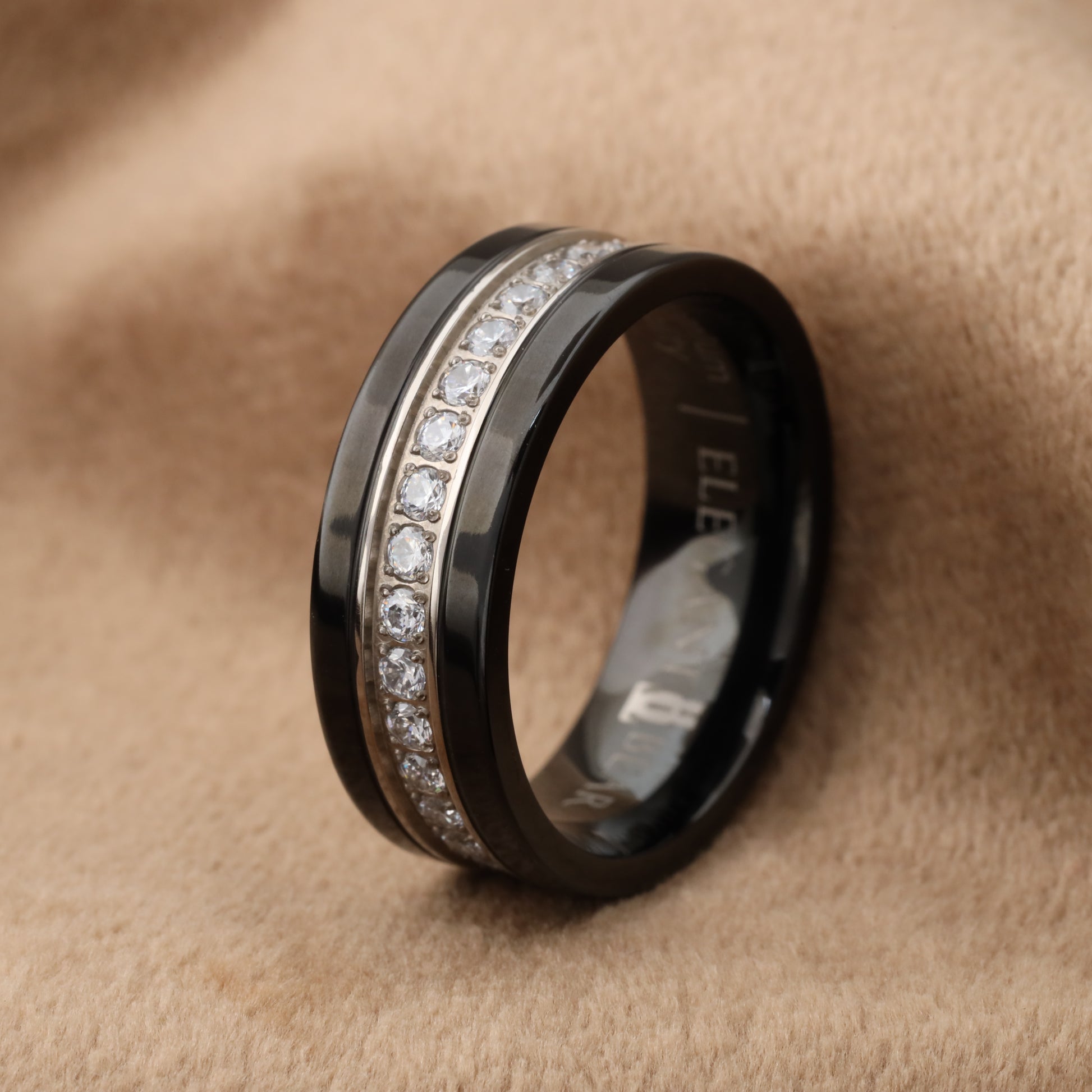 دبلة فاخرة من التيتانيوم مرصعة بفصوص المايكروزيركون الأبيض - تصميم فاخر يحاكي الماس