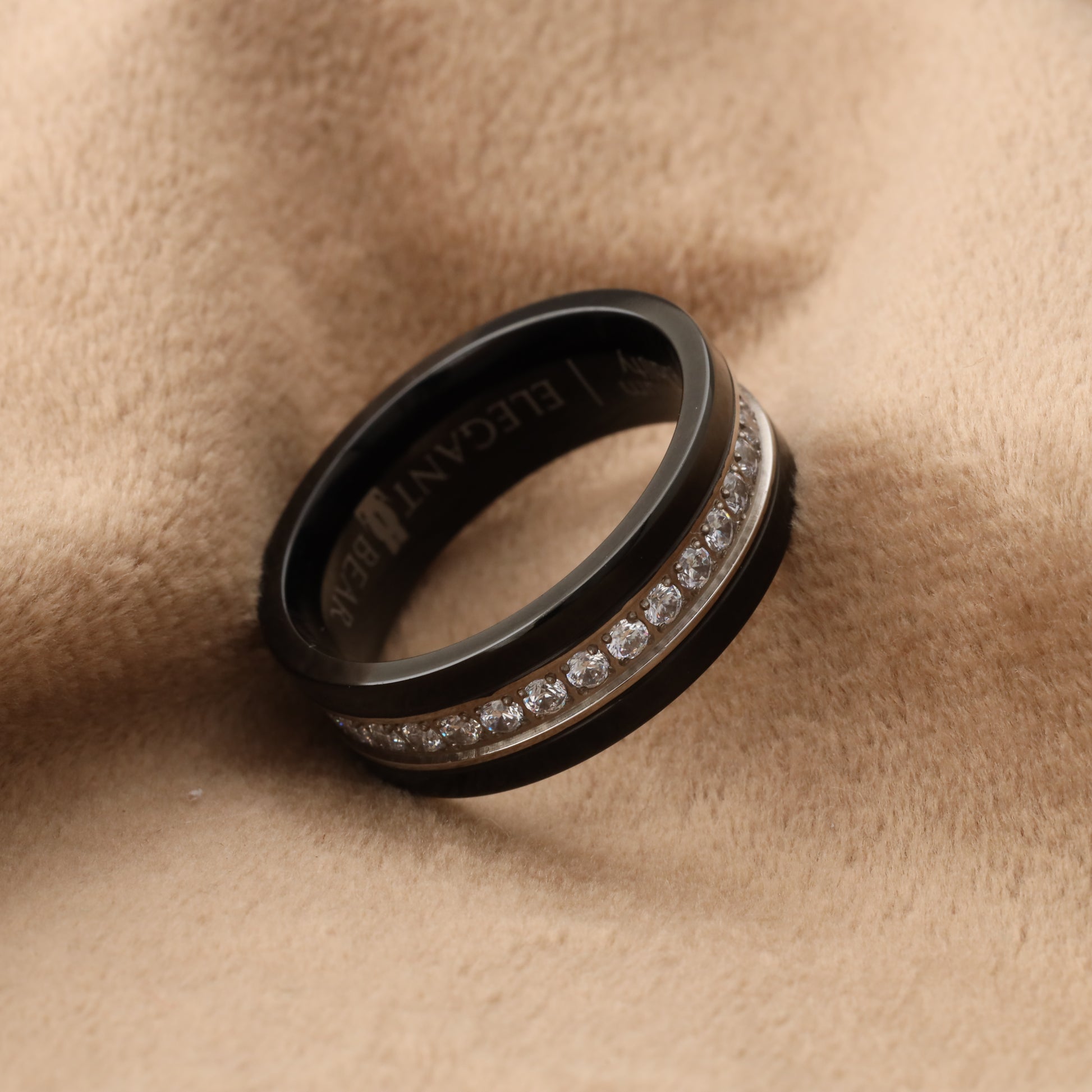 هذه الدبلة تقدم مظهراً فاخراً يضاهي أغلى المجوهرات، مع بريق الفصوص الذي يحاكي الماس وقوة التيتانيوم التي تضمن المتانة. التصميم الأنيق يجعلها مناسبة لأهم المناسبات والاستخدام اليومي الفاخر.