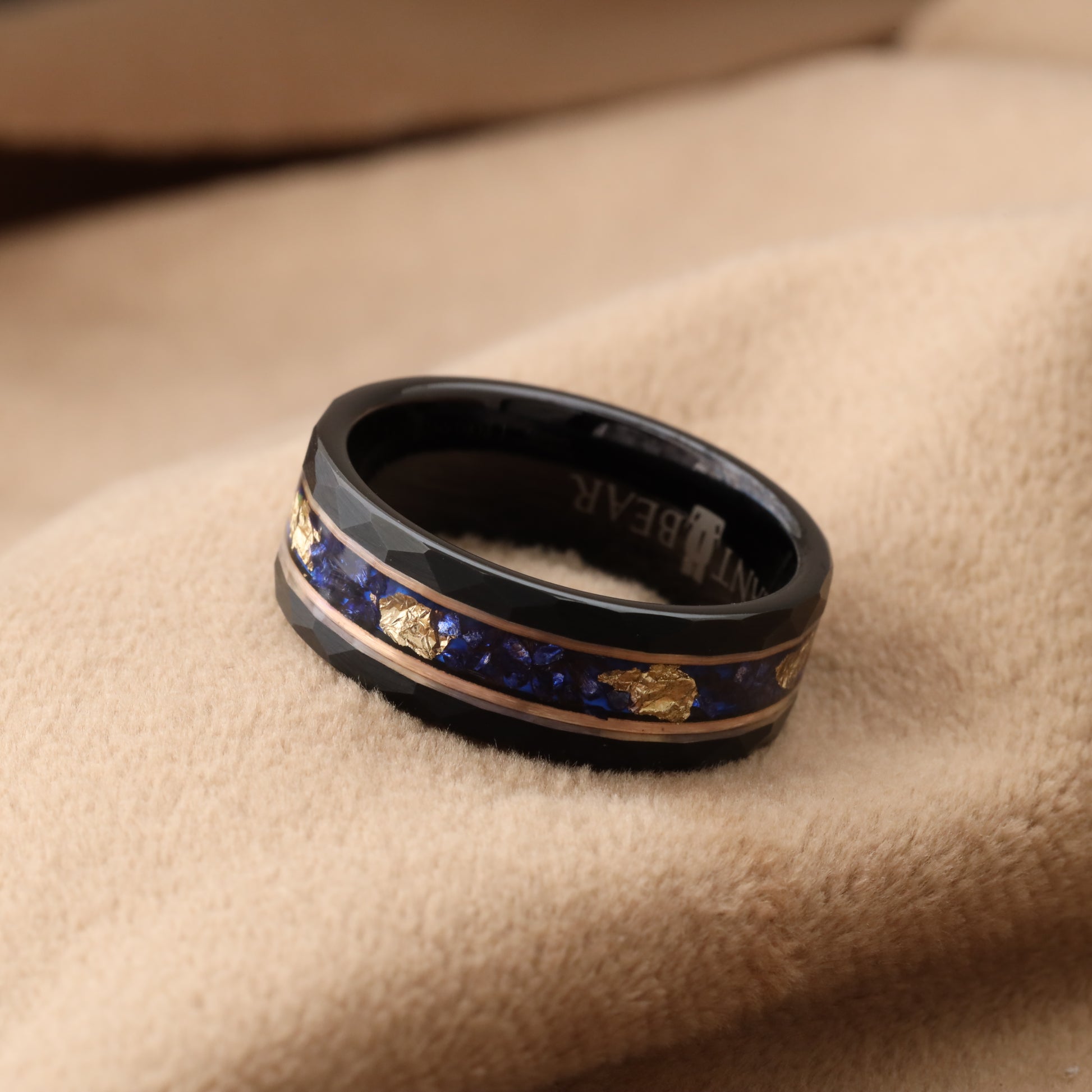 دبلة أنيقة من التنجستين مطعمة بحجر الأوبال الطبيعي وورق الذهب - تصميم فاخر وأنيق
